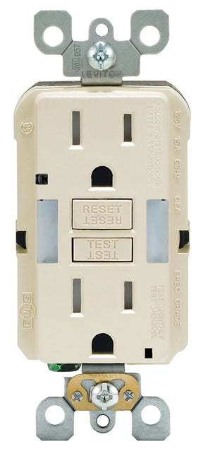 The self-test SmartlockPro Slim GFCI/guide light is a great way to add an extra element of safety when it's dark without losing outlet space in kitchens, bathrooms, laundry rooms and hospitality guest suites. Instead of needing to plug in a nightlight and take up an outlet space, the device offers dual LED guide lights that turn ON and OFF automatically based on light levels and uses only 1 W of electricity. Designed to meet the latest UL standard for auto-monitoring (self-test) our complete line of self-test GFCIs periodically conduct an automatic internal test to confirm that it can respond to a ground fault. With the slimmest profile on the market, the device allows for fast and easy installation, while Leviton's patented reset lockout mechanism prevents reset of the GFCI if it is not wired or operating correctly. The self-test SmartlockPro Slim GFCI/guide light is the smart choice in ground fault circuit interrupter protection.