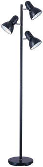This easy to assemble 65 in tall incandescent tree floor lamp has fully adjustable shades and oversized turn knob switch with a black finish.