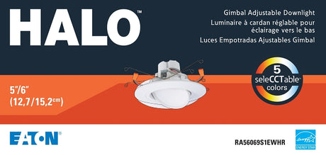 Halo RA5606930WHR LED Retro Gimbal, 7-1/4 in Dia x 3-1/2 in H Dimensions, White