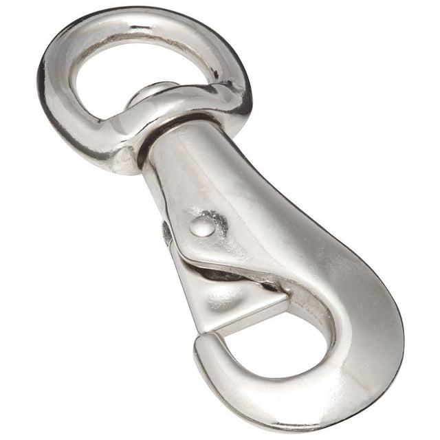National Hardware 3143BC Bull Snap, Working Load Limit: 550 lb, Snap Opening Size: 1-1/8 in, Malleable Iron, Nickel, Dimensions: 5-1/8 in L