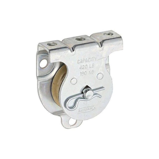 National Hardware N233-247 Pulley, Single, 3/8 in Rope, 420 lb Working Load, 1-1/2 in Sheave, Zinc