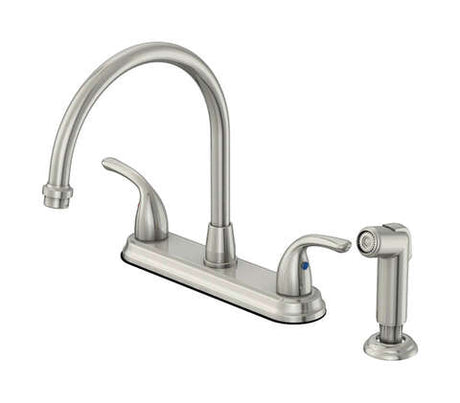 OakBrook Two Handle Brushed Nickel Kitchen Faucet Side Sprayer Included