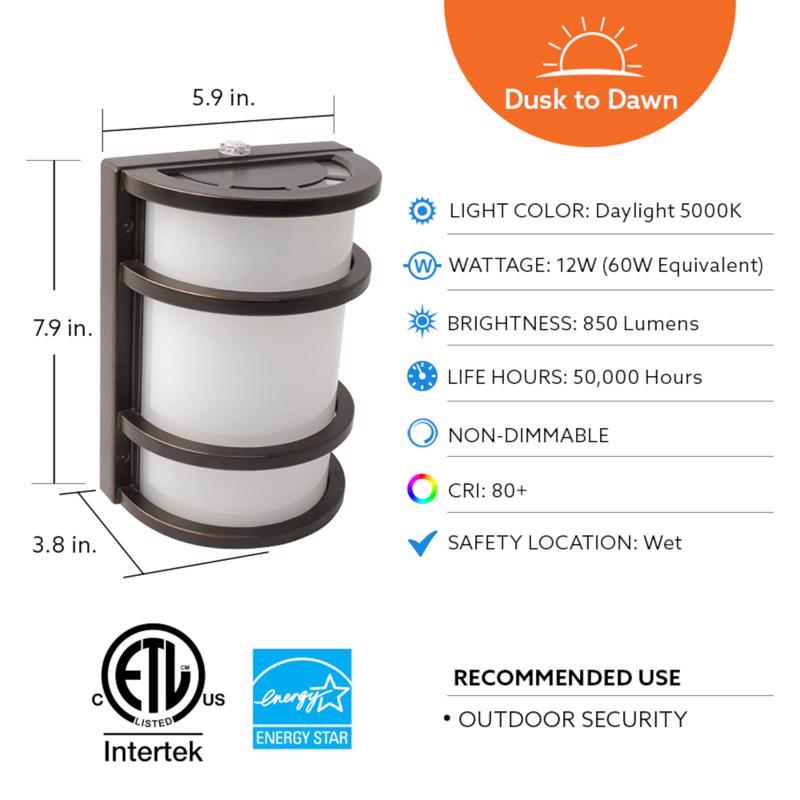 Feit LED Dusk to Dawn Hardwired LED Bronze Security Wall Light