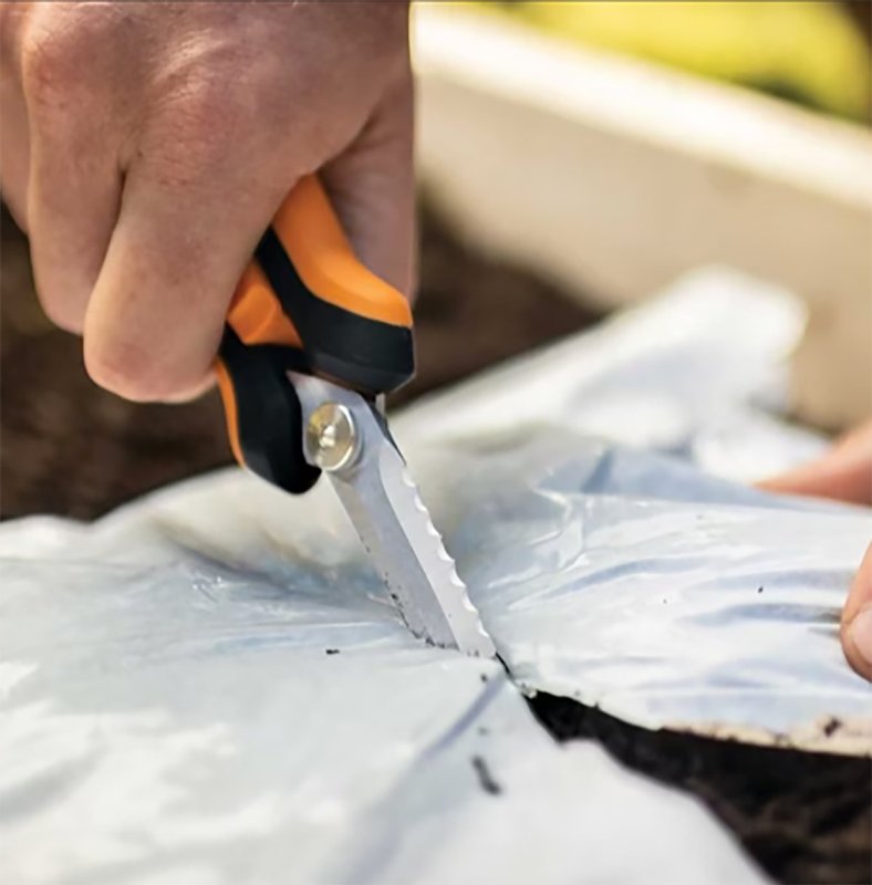 Winner of the red dot excellent of the excellent 2019 award. Easily slice open soil bags and cut wire, netting, landscape fabric and more with the multi-use blades of Fiskars multi-purpose garden snips. From adding fertilizer to setting up trellises, prepping and maintaining a strong foundation is key to a healthy garden and can involve a variety of arduous tasks - all of which rely on retaining blade sharpness. This versatile tool features fully hardened, precision ground, stainless steel blades that cut all the way to the tip and stay sharp through heavy use. An outer, serrated edge is ideal for sawing twine or light rope, while the other straight edge cuts open boxes and bags with precision and ease. An integrated wire cutter also prevents blade damage. Additionally, an Easy Action spring gently opens the blades after each cut to help reduce hand fatigue, while SoftGrip touchpoints enhance comfort and control. An easy open lock and rugged, nylon sheath with belt loop ensures reliable storage and portability.