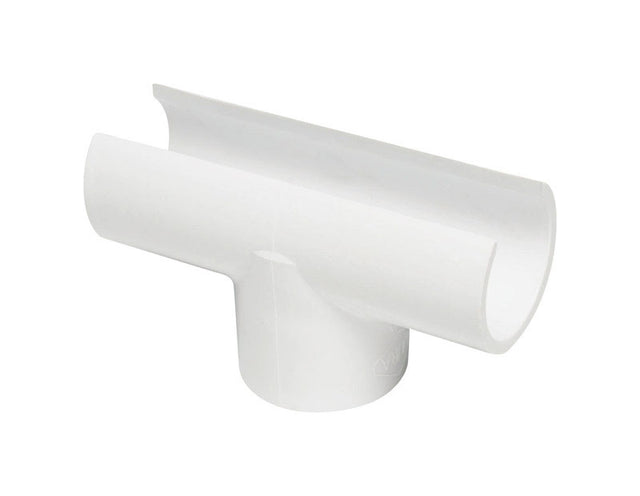 PVC Snap-On Tee can be used in low pressure irrigation systems to add a 90 degree outlet for the same size pipe. This snap-on tee is great for building structures out of PVC, as it is easy to connect and disconnect for quick set-up and tear-down. This fitting is made from high quality schedule 40 PVC, giving it impressive structural integrity and high-pressure tolerance for its weight.