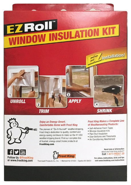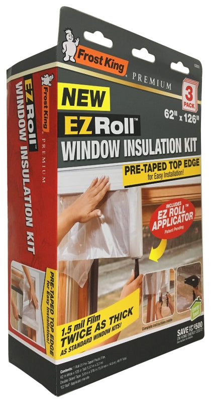 Frost King EZ Roll EZ833CDSP Window Shrink Kit, 126 in W, 1.5 mm Thick, 62 in L, Polyethylene, Clear