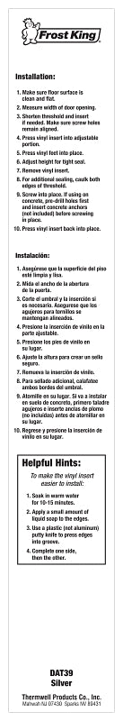 Frost King DAT39H Top Threshold, 36 in L, 3-1/2 in W, Aluminum/Vinyl, Silver