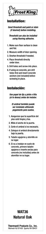 Frost King WAT250 Saddle Threshold, 36 in L, 2-1/2 in W, Wood, Oak, Unfinished