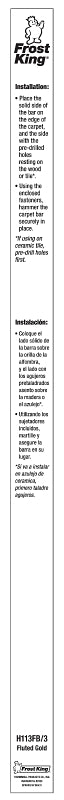 Frost King H113FB/3 Carpet Bar, 3 ft L, 1 in W, Fluted Surface, Aluminum, Gold, Satin