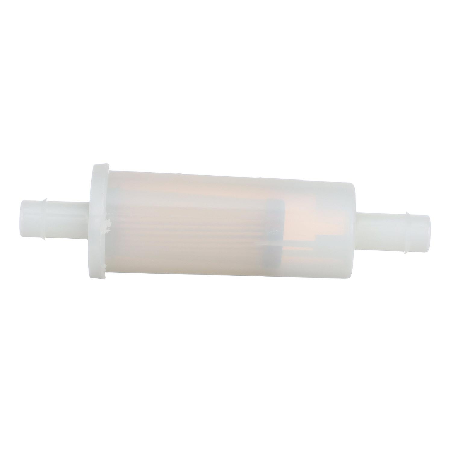 In-Line Fuel Filter, 3/8". Molded white plastic. 20 Micron.