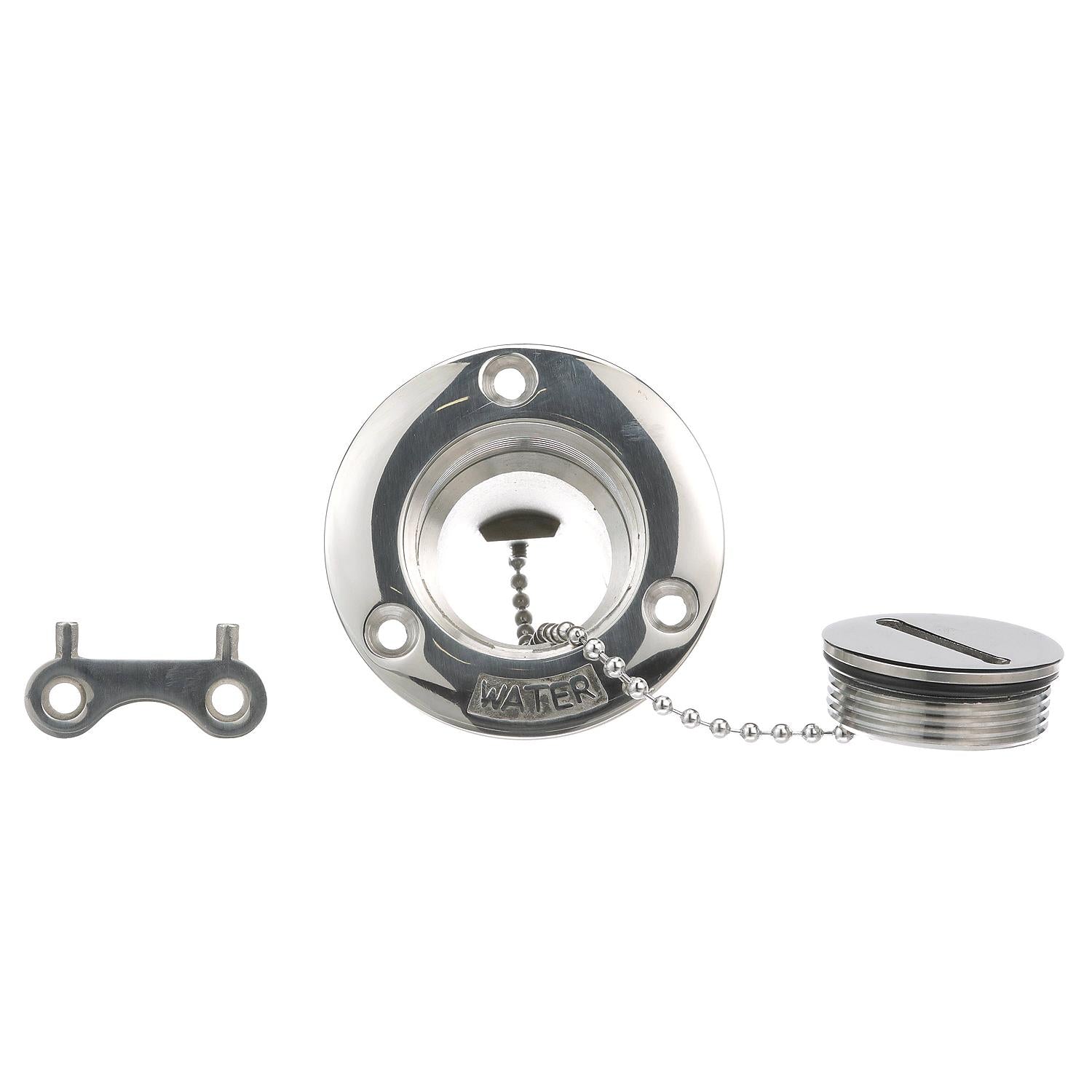 Seachoice Stainless Steel Deck Fill With Cap (Chain Tether) For 1-1/2" Hose