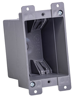 Gardner Bender BOX-RS14 Switch/Outlet Box, Standard Outlet, 1-Gang, 4-Knockout, PVC, Gray, In-Wall Mounting