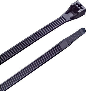 Heavy-duty zip ties are hard-wearing and designed for rugged industrial, automotive and farm/ag applications demanding high levels of tensile strength and large bundle diameters. Permanently secured until you cut them off GB ties lock tight without stretching or sliding. The thick nylon 6/6 material and patented one-piece, injection-molded construction eliminates failure due to parts working loose or breaking off. Raised ridges on the cable ties bent tips are designed to provide a secure grip while requiring minimal effort to close and the strong locking head ensures the increased tensile strength you need. Ideal for ducts, temporary fencing, heavy equipment and vibration prone areas in both electric and non-electric applications, including home repairs, remodeling, kitchen or bathroom renovations in residential and commercial locations. When you've got a big job that demands a strong tie able to handle a large bundle diameter then count on Gardner Bender heavy-duty cable ties. UL recognized component. Ultraviolet black (UVB) ties resist harmful light rays- primarily for outdoor use.