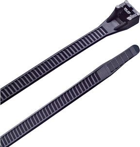 Heavy-duty zip ties are hard-wearing and designed for rugged industrial, automotive and farm/ag applications demanding high levels of tensile strength and large bundle diameters. Permanently secured until you cut them off GB ties lock tight without stretching or sliding. The thick nylon 6/6 material and patented one-piece, injection-molded construction eliminates failure due to parts working loose or breaking off. Raised ridges on the cable ties bent tips are designed to provide a secure grip while requiring minimal effort to close and the strong locking head ensures the increased tensile strength you need. Ideal for ducts, temporary fencing, heavy equipment and vibration prone areas in both electric and non-electric applications, including home repairs, remodeling, kitchen or bathroom renovations in residential and commercial locations. When you've got a big job that demands a strong tie able to handle a large bundle diameter then count on Gardner Bender heavy-duty cable ties. UL recognized component. Ultraviolet black (UVB) ties resist harmful light rays- primarily for outdoor use.