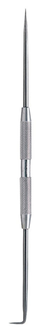 - Aluminum body with knurled finger grip and two fixed, hardened and ground steel points