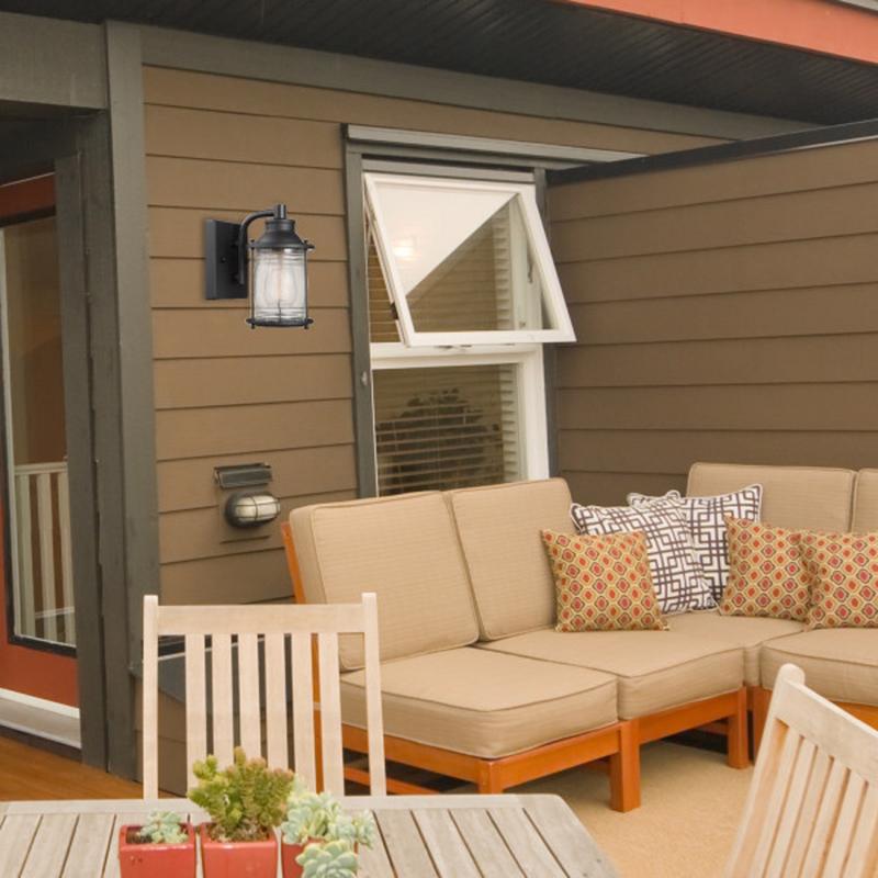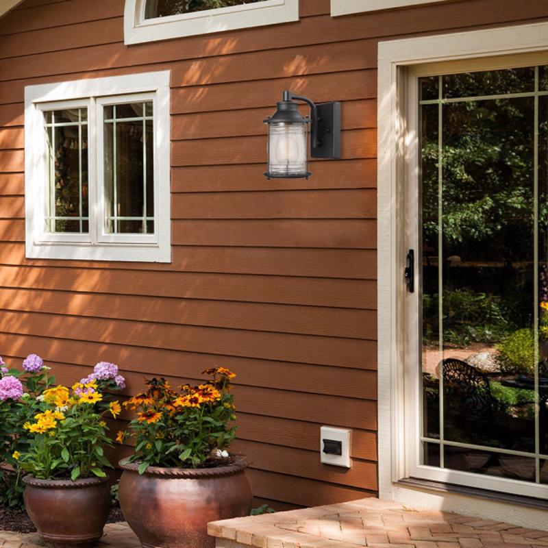 Creating a gorgeous, welcoming outdoor living space is simple - bring the inside out! Utilizing elements usually kept inside will amp up your space and allow you to stay outside well into the evening hours. The dark bronze finish and ribbed seeded glass shade of Globe Electric's Donovan Wall Sconce adds warmth and calmness to any space while the chic square backplate makes it super stylish and visually appealing. This sconce can be placed on either side your entryway for a warm welcome home or bring it inside for a variety of different applications.
