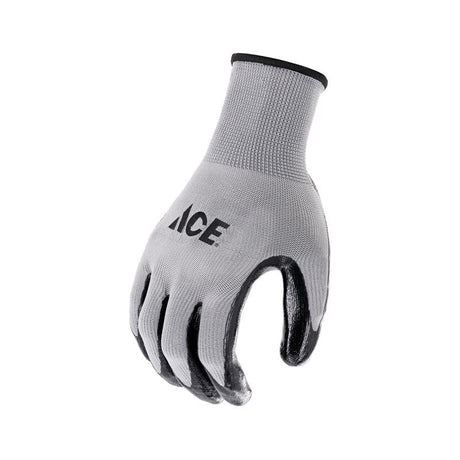 Ace Men's Indoor/Outdoor Coated Work Gloves Black/Gray L 1 pair