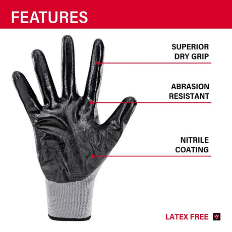 Milwaukee Cut Level 3 Unisex Elasticated Knit Dipped Gloves Black/Red M 1 pair
