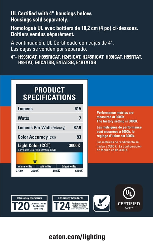 Gimbal adjustable downlight, 5 selectable colors, 2700K, 3000K, 3500K, 4000K and 5000K. 7 watts, 70000 hours life. UL Certified. 35 degree tilt, 360 degree rotation. Bulb and trim replacement.