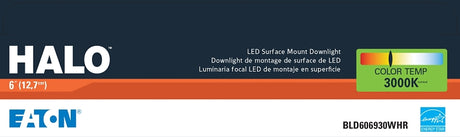 Halo HLB Series HLBSL6099FS351EMWR Downlight, 12.6 W, 120 V, LED Lamp, Plastic, Matte White
