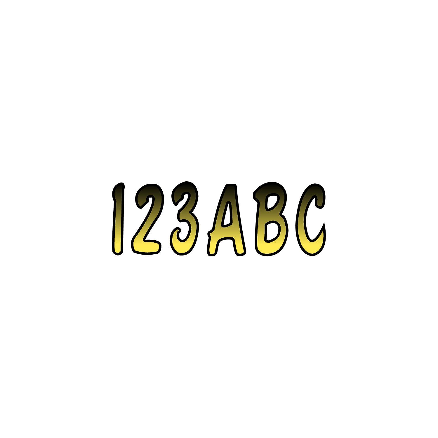 Series 200 Complete set of registration letters and numbers for your boat, pwc, or snowmobile. All registration kits include 4 sets of A-Z, 0-9. Total of 146 decals. Factory matched colors from the manufacture. UV coated, fade, fuel and scratch resistant 3-inch legal size. Just peel and apply. First color listed is the base and the other one is the outline color.