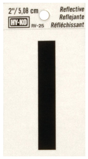 Hy-Ko RV-25/I Reflective Letter, 1-1/2 in W x 3 in H Dimensions, Character: I, 2 in H Character, Black Character, Vinyl, Pack of 10 is backordered and will ship as soon as it is back in stock.