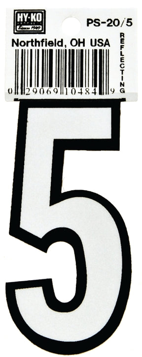 Hy-Ko PS-20/5 Reflective Sign, Character: 5, 3-1/4 in H Character, Black/White Character, Vinyl, Pack of 10