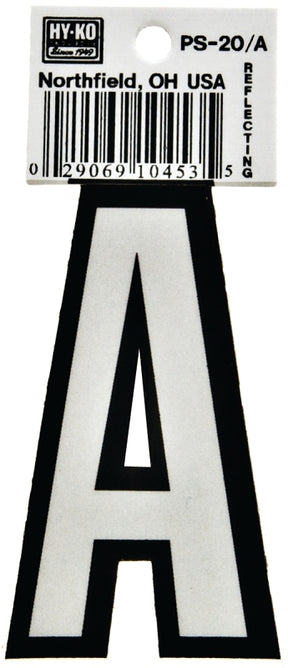 Hy-Ko PS-20/A Reflective Letter, Character: A, 3-1/4 in H Character, Black/White Character, Vinyl, Pack of 10