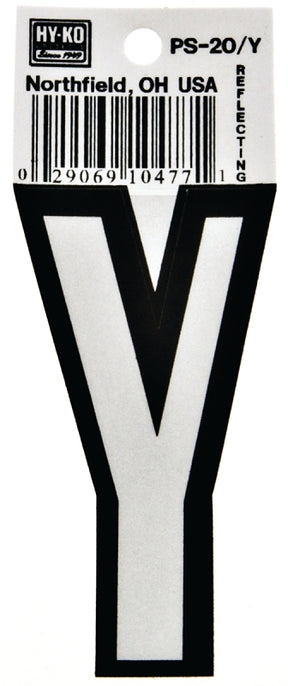 Hy-Ko PS-20/Y Reflective Letter, Character: Y, 3-1/4 in H Character, Black/White Character, Vinyl, Pack of 10