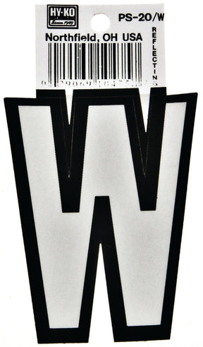 Hy-Ko PS-20/W Reflective Letter, Character: W, 3-1/4 in H Character, Black/White Character, Vinyl, Pack of 10