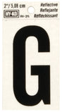 Hy-Ko RV-25/G Reflective Letter, 1-1/2 in W x 3 in H Dimensions, Character: G, 2 in H Character, Black Character, Vinyl, Pack of 10