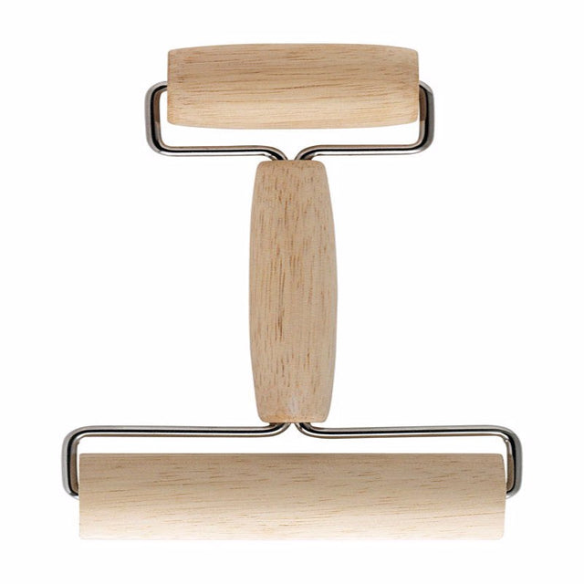 Mrs. Anderson's Double Dough Roller easily rolls dough right in the pan for pie crust, cookies, and pasta that cooks evenly with tastier results. Made with wooden rollers; perfectly balanced for easy use and smooth, effortless rolling. * Easily roll out dough right in the pan to a uniform thickness; larger roller spreads dough out evenly; smaller roller smooths edges and sides. Ideal for home and professional bakers and pastry chefs; roll dough for pie crusts, pasta, cookies, fondant, even crafting clay, and more. Larger roller (4-inches wide); smaller roller (2.5-inches wide); compact for easy storage; easy to use and clean; wipe with a damp cloth