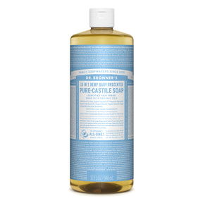 With no added fragrance and double the olive oil, our Baby Unscented Pure-Castile Liquid Soap is good for sensitive skin; babies too (though not tear-free!). Dr. Bronner's soap is concentrated, biodegradable, versatile and effective. Made with organic and certified fair trade ingredients, packaged in a 100% post-consumer recycled bottle.