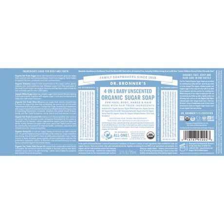 Dr. Bronner's 4-in-1 Baby Organic Baby Unscented Scent Sugar Soap 12 oz, Pack of 12