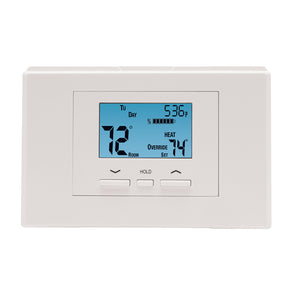 7 day programmable thermostat Unique program for every day of the week User option: 2 or 4 periods per day Temporary override & manual hold Keyboard lock