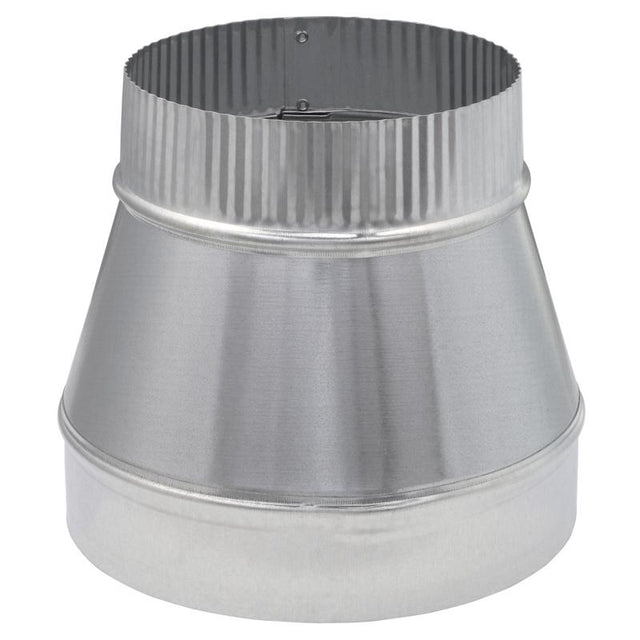 The 8 inch galvanized reducer is used for connecting single wall stove pipe to chimneys and vent stacks. Allows for 8 inch diameter round pipe to connect to 6 inch diameter round pipe. Sturdy, 24 gauge construction designed for optimal heat efficiency and long-term use. Crimped on one end to easily fit into pipe or fitting of the same diameter.