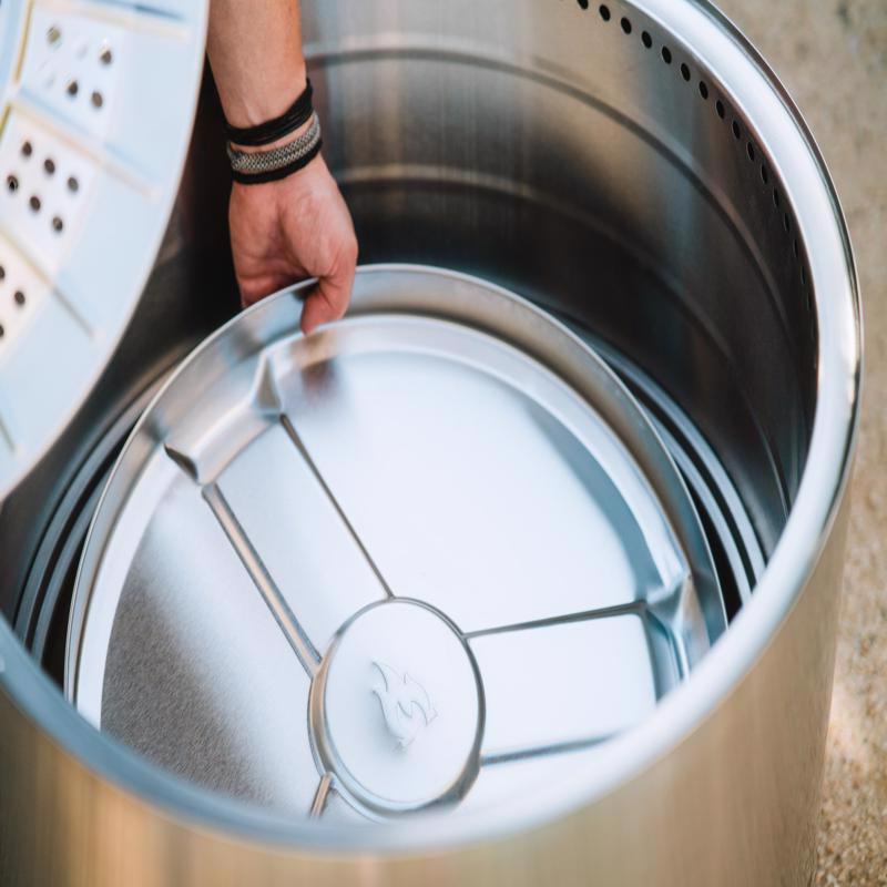 Smokeless Indulge in fireside experiences without the inconvenience of a smoky flame. Our Signature 360 deg. Airflow super-heats air to burn off smoke before it can get to your clothes or hair. And without that pesky “post-fire” smell, teary eyes, or a game of musical chairs to dodge smoke, you can enjoy ultimate warmth without sacrificing comfort. Ditch the hassle of complicated assembly. Making good moments should always be easy, and our fire pits are designed to deliver. Thanks to 360° Signature Airflow, easily spark up bright flames whether you’re a first-timer or a pro. And just like the start-up, clean-up can be done in a snap. Our new removable ash pan makes getting rid of incinerated leftovers simple so that you can enjoy nights with less mess and more good moments. Weighing in at just over 41 pounds, your fire pit was made to move. Spark up smokeless adventures in the front yard or the backyard. Your fire pit is ready to go wherever you do. 304 stainless steel is highly durable, surprisingly lightweight and won’t cave under the pressure of an ultra-hot flame. Count on your fire pit to hold up to all of your experiences– whether in the backyard, at your team’s tailgate or in the backcountry. Maximize your open flame fun with Solo Stove's ecosystem of accessories. Enjoy added safety with Shield and Stand, a warm night around the fire enhanced by Heat Deflector or your next family cookout on a Cast-Iron Cooktop.