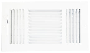 ProSource 3-Way Sidewall Register, Number of Ways: 3, Air Deflection Angle: 52 degree, Faceplate Type: Opposite and Upward Blade, Projection Size: 13.5 x 7.5 in, Duct Opening Width: 12, Duct Opening Height: 6 in, Blade Spacing: 0.5 in, Steel, White, Installation Type: Mounted, 13.5 in L, 7.5 in W, 1.5 H, Suitable for: Sidewall/Ceiling, Includes: Mounting Screws Included