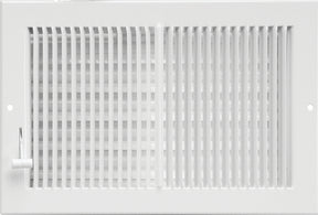 Ideal for heating or cooling. All-steel construction, two-way air deflection, 1/3 in vertical fins set at 20 deg angle. 3/16 in margin turnback, full range multi-louver valve. Durable powder coat painted finish.