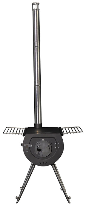 US Stove Company's caribou camp stoves were developed to bring our home heating knowledge to the outdoors. Designed with the necessary features to be the addition to any expedition gear. The caribou outfitter is lightweight and easy to pack allowing it to go anywhere you need to keep you warm. In areas where open fires are not permitted this portable stove could be a handy item to have. Each stove comes packed neatly in a non-rattle carry case with all 6 ft of the chimney pipe, legs and racks making them extremely portable. The ample 117 sq-in cooking surface allows for plenty of room to cook a meal for your group and the included racks are great for drying gloves, socks and other small items after a soggy hike. The racks also allow for indirect heat cooking of baked potatoes, foil wrapped meats and also fold up to be used as an easy to carry handle. The included legs have extendable feet to allow for use on uneven surfaces. The caribou outfitter model is perfect for small to medium sized tent installations yet weighs only 18 lb making it a welcome addition to any gear set. The caribou outfitter stove also makes a great gift idea for your favorite camper, fisherman (great for ice-fishing), hunter or lover of wood-burning stoves.