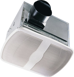 At the highest point the grill projects only 1/2 in down from the ceiling. The electronically balanced centrifugal blower wheel assures maximum ventilation at the minimum sound. Easily installed using the adjustable hanging brackets for 16 in centers. Motors are suitable for continuous operation. 4 in plastic duct collar with back draft damper. UL listed for installation over a tub or shower on a GFCI circuit. HVI2100 Certified.