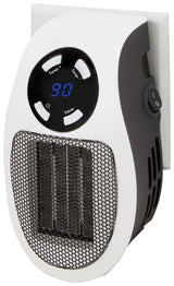 Features 350W heat setting, adjustable thermostat, LED digital display, programmable timer 1 hour - 12 hours and thermal overload switch. Plugs directly into wall outlet. Push button to rotate plug. 3-prong grounded plug. ETL and cETLus.