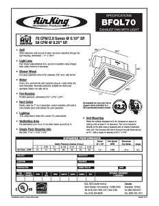 Air King BFQL70 Exhaust Fan, 0.5 A, 120 V, 70 cfm Air, 2 sones, LED Lamp, 4 in Duct, White
