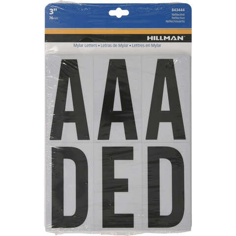 HILLMAN 3 in. Reflective Black Vinyl Self-Adhesive Letter Set A-Z 54 pc, Pack of 6