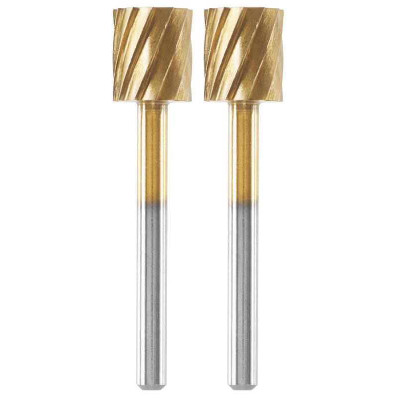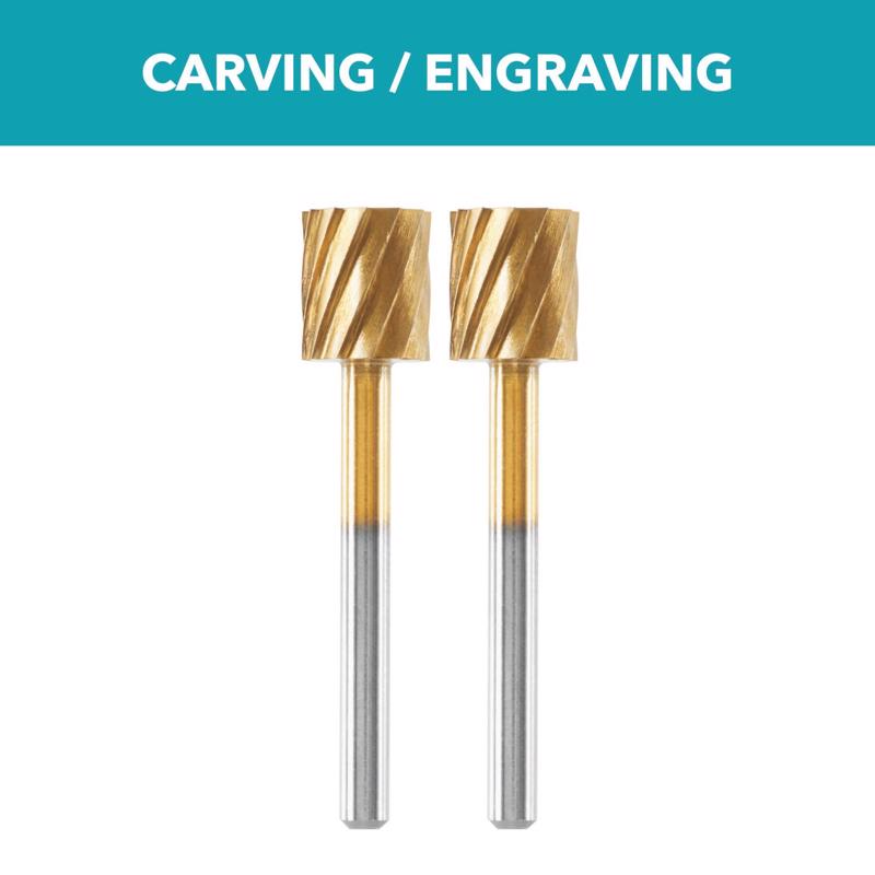 Dremel's line of Max Life high-performance accessories provides long-lasting performance and impressive durability. Built to give you longer lasting, stronger performing, versatile accessories. The Max Life 115HP Carving Bit is coated and engineered to last 2X longer than the standard, non-coated Dremel 115 carving bit. For use with all Dremel high-speed rotary tools, a high-speed cutter works well for detailed material removal in applications like shaping, carving, engraving, hollowing, precision cutting, grooving, slotting, inlaying, making tapered holes, or freehand routing. The cylinder shape of the carving bit allows for deep removal of material, cuts flat areas, and round edges, and makes stop cuts and V-cuts. The accessory tip makes flat bottom slots and grooves, flat side cuts, and makes V-cuts when held at 45 degrees.