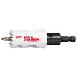 Milwaukee Hole Dozer hole saw features Rip Guard, the strongest tooth form in the industry. Each tooth is built with more steel behind the cutting edge for added strength. Hole Dozer Bi-metal hole saw with arbor has a new 3.5 TPI tooth design that offers you the longest life in metal applications. All-access slots solve the frustration of plug removal, making you more productive with less downtime between holes. The new slot design also gives you increased pilot visibility for accurate placement and faster chip ejection keeping your cut cool. Hole Dozer thermoset coating allows for faster cutting and is optimized for cordless tools, delivering you 25 percent more holes per charge.