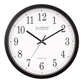 Great for commercial or home use, this black framed clock with easy to read Arabic numerals automatically sets to the correct time and adjusts for daylight saving time using the radio controlled signal out of Fort Collins, CO. Featuring the four primary time zones in the US it allows for easy coordination with other regions. Never worry about accurate time again with this atomic clock from La Crosse Technology.