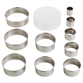 Mrs. Anderson's Baking Round Cookie Cutter Set makes baking homemade cookies fun for kids of all ages. Fun and easy to use, simply mix cookie dough and chill for at least 1 hour. Roll out chilled dough evenly on a cool, lightly floured surface and dust a bit more flour over top. Press cutter downward to cut dough and dip the cutting edges in flour between each cut to keep the dough from sticking. Bake cookies according to recipe.
