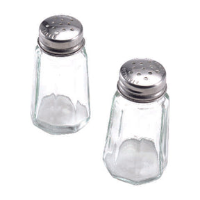 This Gemco Salt and Pepper Set features a classic diner design, with a glass body and metal caps that twist off for easy filling. Each shaker holds 10 ounces. Dishwasher safe.