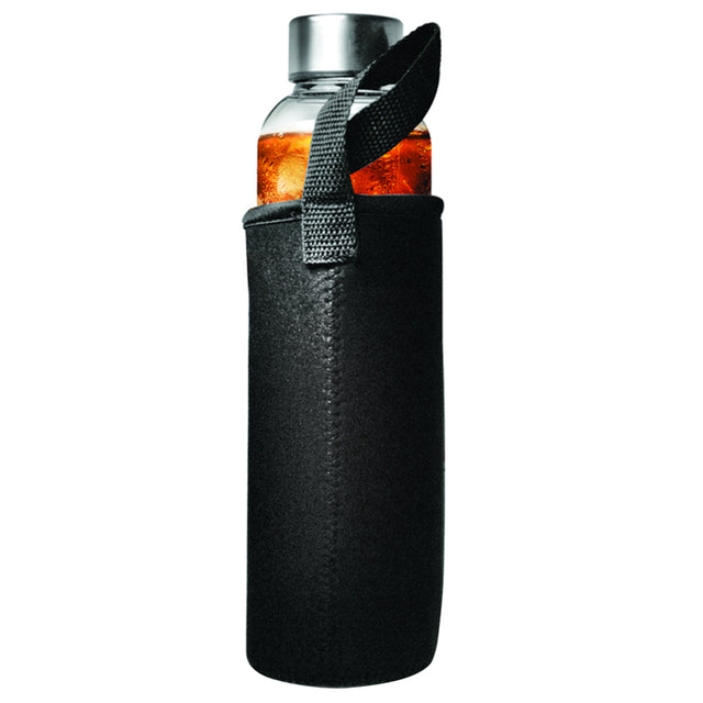 Crafted from temperature safe borosilicate glass while utilizing a super fine stainless steel mesh that doesn't alter flavor, our Cold Brew Travel Bottle is the ideal solution for enjoying delicious cold brewed coffee on the go. Guaranteed to make refreshing cups of iced coffee, our Cold Brew Travel Bottle produces coffee that's up to 65% less acidic and naturally sweeter than any heat brewed variety. It's the perfect accoutrement for creating rich, smooth and icy cold coffee to jolt you awake in the morning or to make it through those long summer days. With a minimal physical footprint, the Primula Cold Brew Travel Bottle is incredibly useful for out of the house expeditions! Its slim design makes it perfect for storage in a suitcase, canvas bag, shoulder bag, backpack and more and the insulating neoprene sleeve has a carry strap for easy access. Get brewing.